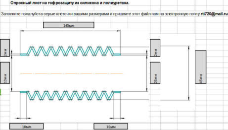 Для заказа гофрозащитных сильфонов можно заполнить и прислать нам на электронную почту опросный лист. Если гофра не стандартная, желательно прислать чертеж, 3d модель или эскиз от руки с основными размерами и количество изделий на которое нужно сделать расчет. В течении 20 минут наши специалисты рассчитают стоимость изготовления и пришлют вам обратно предложение с ценой и сроками изготовления. |