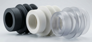 Сильфоны из резины оптимально применять при изготовлении крупных партий изделий. Так же на резину есть ограничения по максимальным размерам изделия и толщине стенки. Каждый сильфон из резины индивидуально рассматривается на возможность изготовления. В целом резина более "трудный" материал для сильфонов имеющий большее количество ограничений чем силикон и полиуретан.
